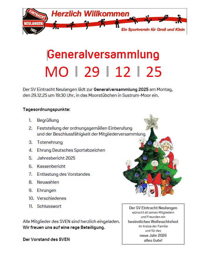 Einladung zur Generalversammlung des SV Eintracht Neulangen